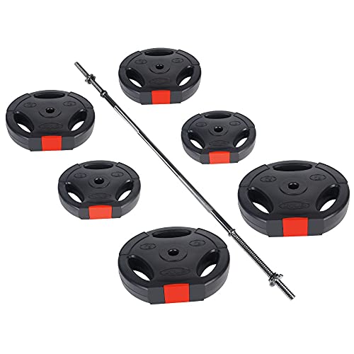 Made of thick vinyl shell filled with cement with a 1-inch center hole fits any Standard bar with diameter 1” or less
