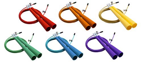 Made with a durable and lightweight 3mm wire cable, this Champion Sports XRJ Series Double Bearing Speed Jump Rope is adjustable and can easily fit the height and needs of each individual jumper. The jump rope is designed for high cadence speed jumping with a double bearing system in the handles that allow for faster and smoother spins. Ideal for use both outdoors and in the gym, this speed jump rope has tough and ergonomic handles that are comfortable to hold during even the most intense workout routines. Sold as a single jump rope or in a 6 jump rope set.