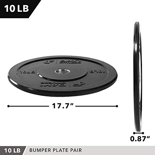 Day 1 Fitness Olympic Bumper Plate 2” – Singles or Pairs, 5 Weight Options 10lbs to 45lbs – Weighted Plates for Barbells…