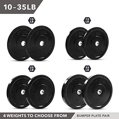 AVAILABLE IN MULTIPLE WEIGHTS AND SIZES: Day 1 Fitness bumper plates are sold individually or in pairs – Individual plates are available in 10, 15, 25, 35 and 45 pounds – Sets of weights (pairs) are available in 10, 15, 25 or 35 pounds