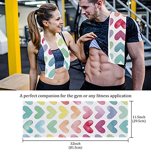 DEYYA Microfiber Gym Cooling Towels Sports Fitness Workout 2 Pack Reusable Soft Sweat Towel for Yoga Running Swimming Cycling Colorful Love Loving Heart