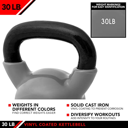 j/fit Cardio Workout Kettlebell Weights | Vinyl Coated Solid Cast Iron – Various Weights (5, 8, 10, 12, 15, 20, 25, 30, & 35 lbs)