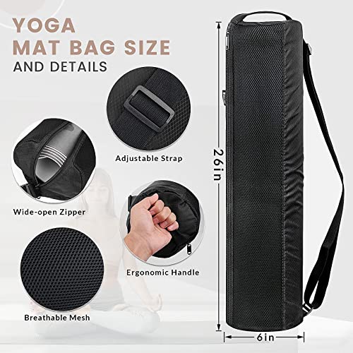 【Design Features】Our yoga mat bag is breathable and made from high-quality Oxford cloth along with a mesh structure, A contoured zipper that allows for easy access, and A slim & sleek design for the best in portability, and style.