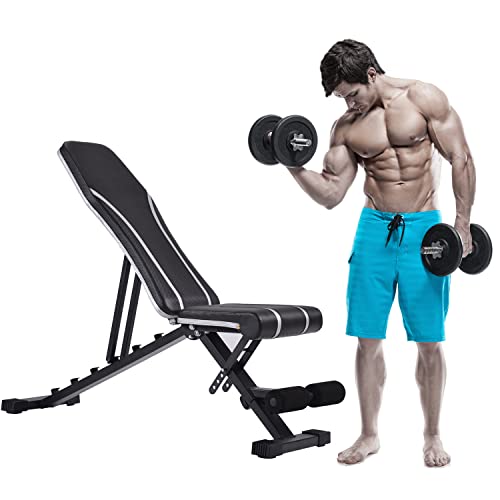 Wokilye Weight Bench , Utility Adjustable Bench for Full Body Workout, Foldable Incline/Decline Exercise Bench Suitable for Home, Office, Gym, Easy Storage.