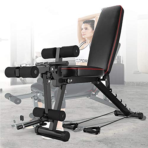Yizc Adjustable Weight Bench,Barbell Lifting Press Exercise Workout Bench for Home Strength Training,Folding Flat Incline Decline Fitness Bench with 2 Rope