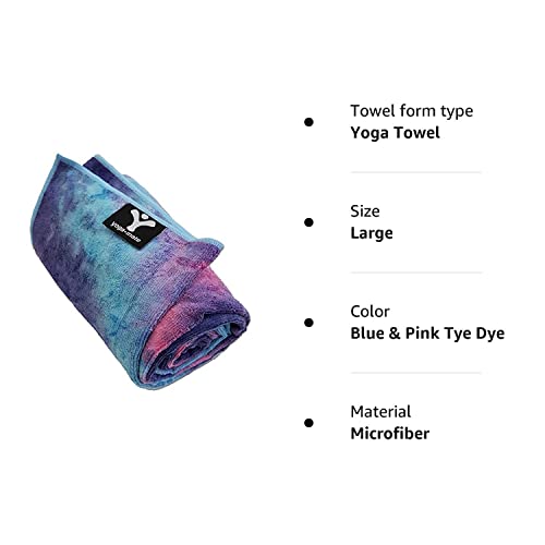 Yoga Mate Soft, Sweat Absorbent, Non-Slip Bikram Yoga Mat Size Towel, Blue & Pink Tie Dye | Blue Trim